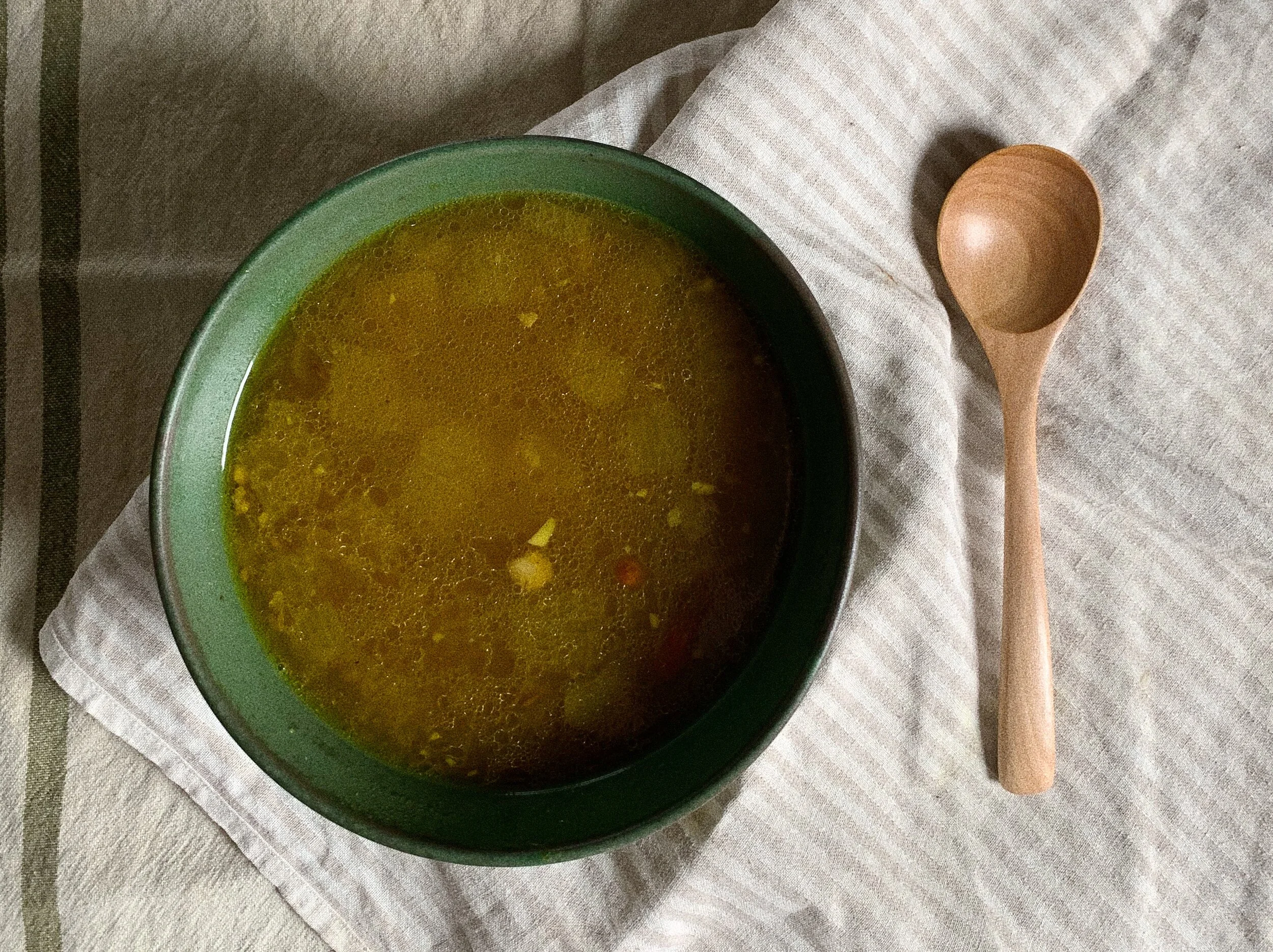 Once it’s been simmering for 1 hour, turn off the heat and allow to sit for about 20 mins to cool down. Remove the lemon peel & cinnamon bark before eating - everything else can be eaten. There may be a thin layer of fat on the top, do not remove, this is full of gelatin and healing minerals for your gut.