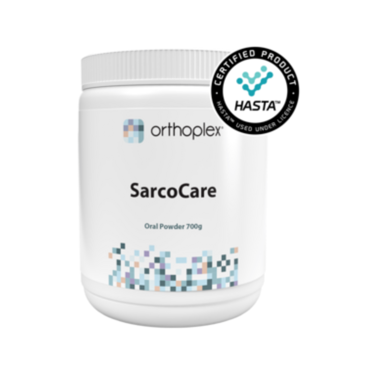 Orthoplex SarcoCare® is a specialist formulation designed for practitioners in clinical practice. Muscle strength and muscle mass decline as a consequence of ageing and lack of physical activity. Short periods of bed rest significantly accelerate this decline. Taking steps to maintain muscle health is important for adults of all ages given our general wellbeing and personal independence are impacted by our strength.